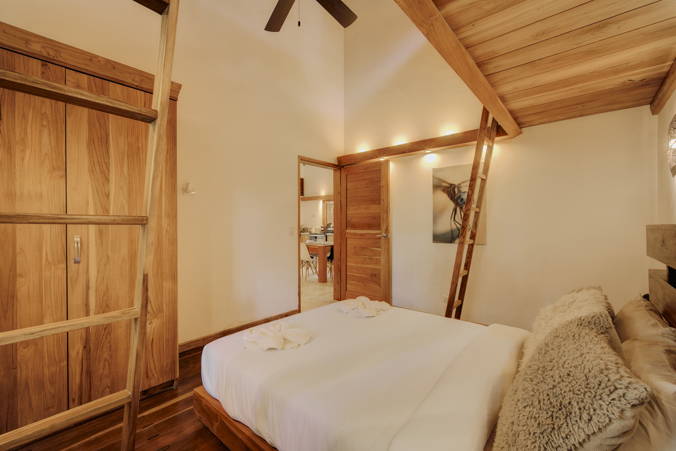 Encantadora villa en el corazón de Playa Chiquita con piscina compartida. La villa tiene capacidad para 4 adultos y 2 niños, con 2 dormitorios con aire acondicionado, uno con cama tamaño queen, el otro con cama tamaño queen y 2 camas individuales en un entrepiso, 1 baño grande y cocina totalmente equipada. rancho para descansar cerca de la piscina, a solo 5min andando de la playa ¡Vive la experiencia perfecta en el paraíso costero!