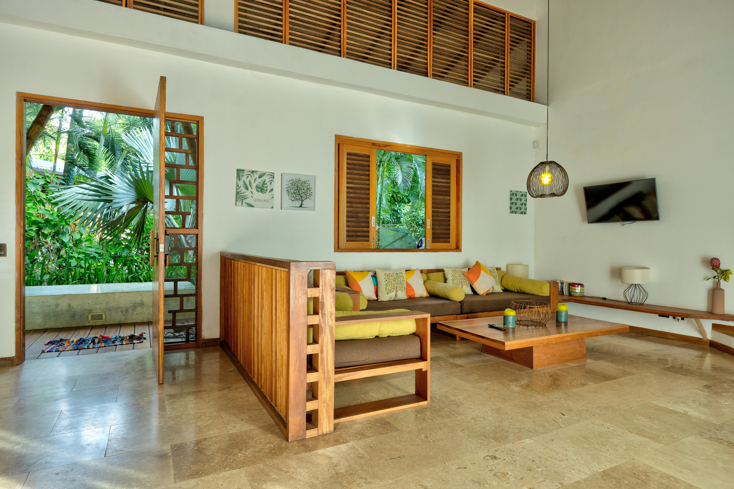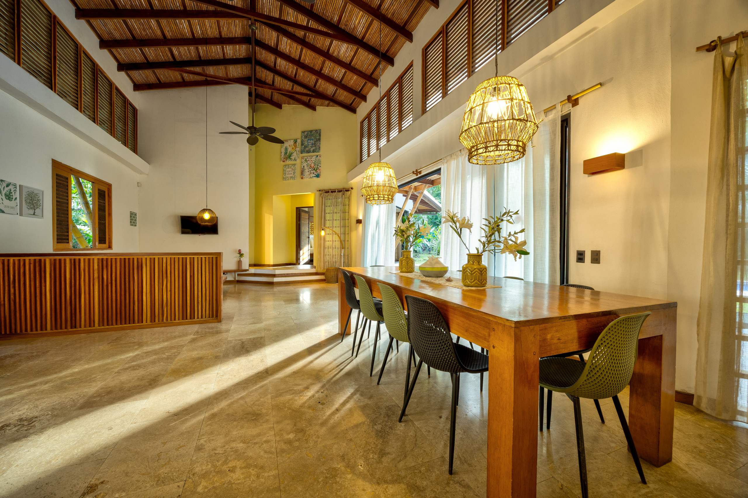 Disfrute de maravillosas vistas de la selva y el mar desde la terraza de arriba o de una copa de vino en la terraza cerca de la piscina.
