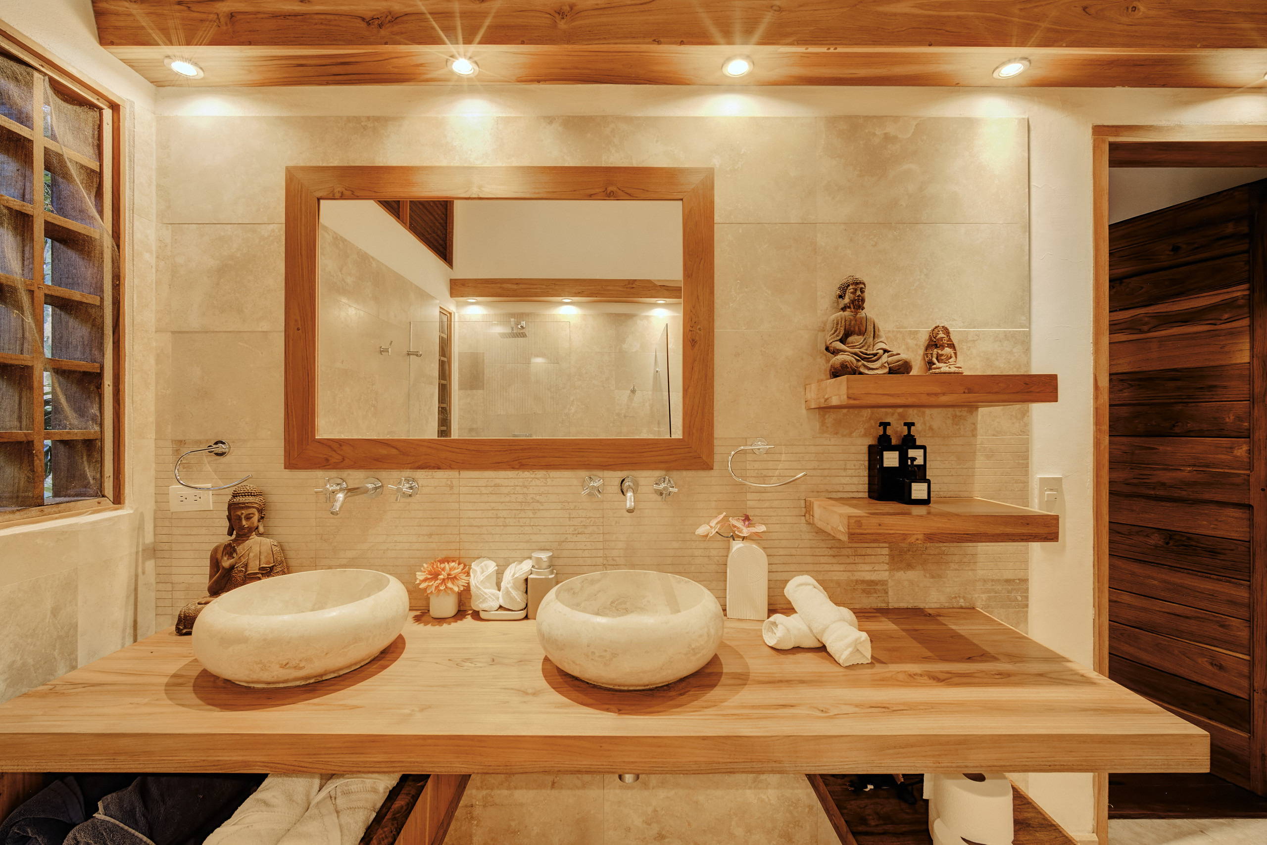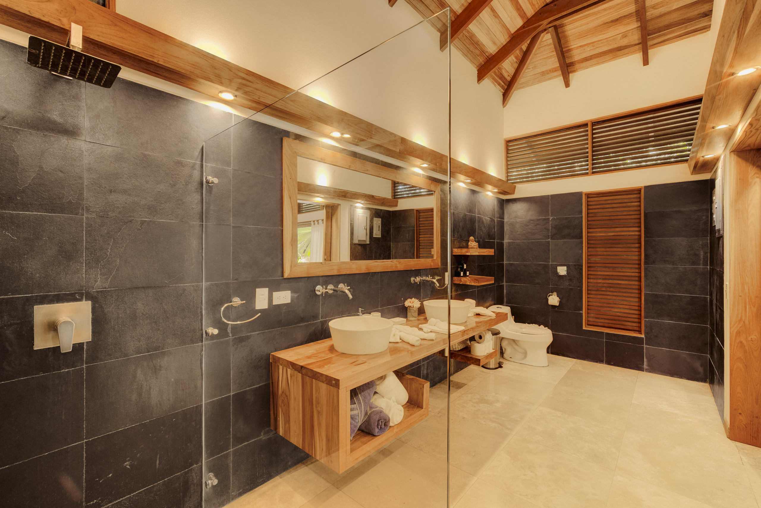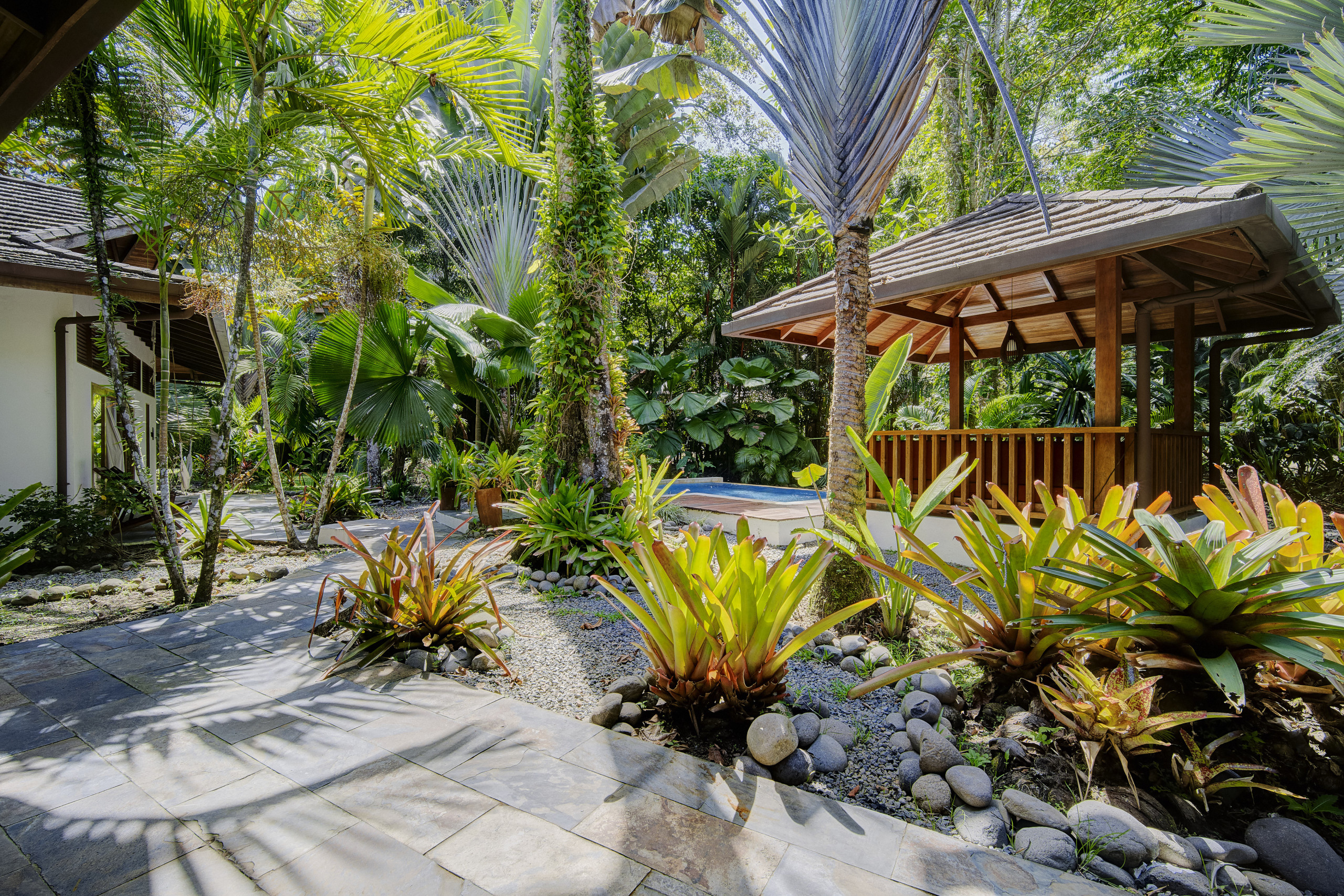 Welcome to Zen Resort, where the rainforest meets the beach on beautiful Playa Chiquita! The Zen Resort is just a 200 meter walk from the ocean and right in the heart of Playa Chiquita. There are restaurants just steps from the property so there is no need to drive. This exotic tropical villa is located in lush, enclosed gardens next to one of the most beautiful beaches in Costa Rica. Our location is perfect for guests who love the beach and want the complete convenience of restaurants and a great grocery store just steps away. The Zen Resort is custom made and professionally decorated. The large house, Zen Villa, has sliding French doors in the living room and bedrooms that open to a covered patio that brings in the tropics. There is a covered outdoor living room giving you the option of lounging or dining alfresco. Monkeys, sloths, toucans and parrots are frequent visitors to the gardens. There is a beautiful open-air Bali style bathroom adjacent to the master bedroom and a separate full bathroom and second shower. The master bedroom has a king bed and sliding doors that open to the pool area. The second and third bedrooms have queen beds and share a huge bathroom with shower. All bedrooms have air conditioning units for a restful sleep. If you are looking for a luxury house for rent in Costa Rica that is private, beautiful and luxurious, the Zen house is the right choice for you. Zen Resort has two additional villas that have their own infinity pool, kitchen and a huge luxury bathroom. Each villa (Bodhi and Nirvana) has 2 bedrooms with queen beds and a loft in one of the rooms.