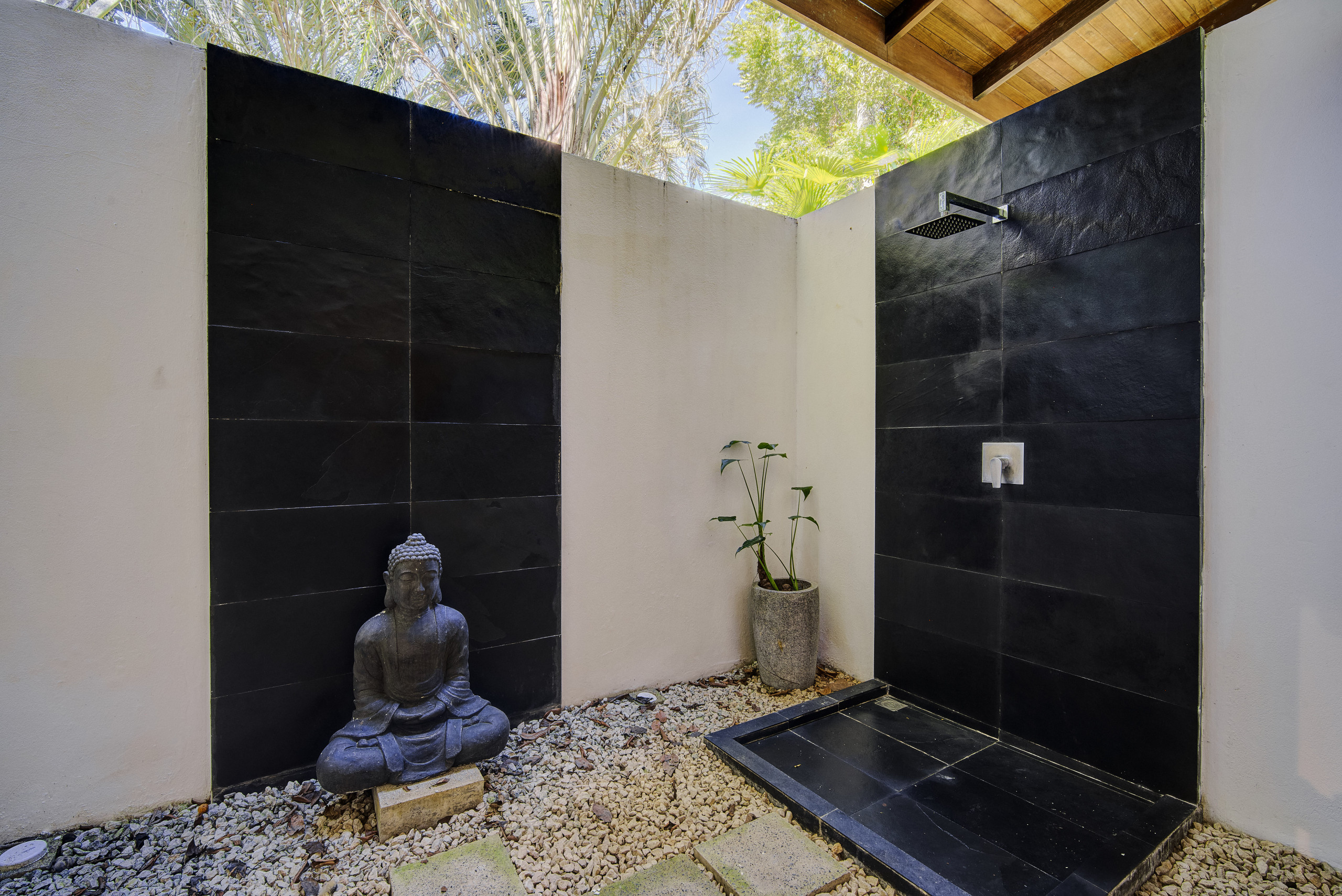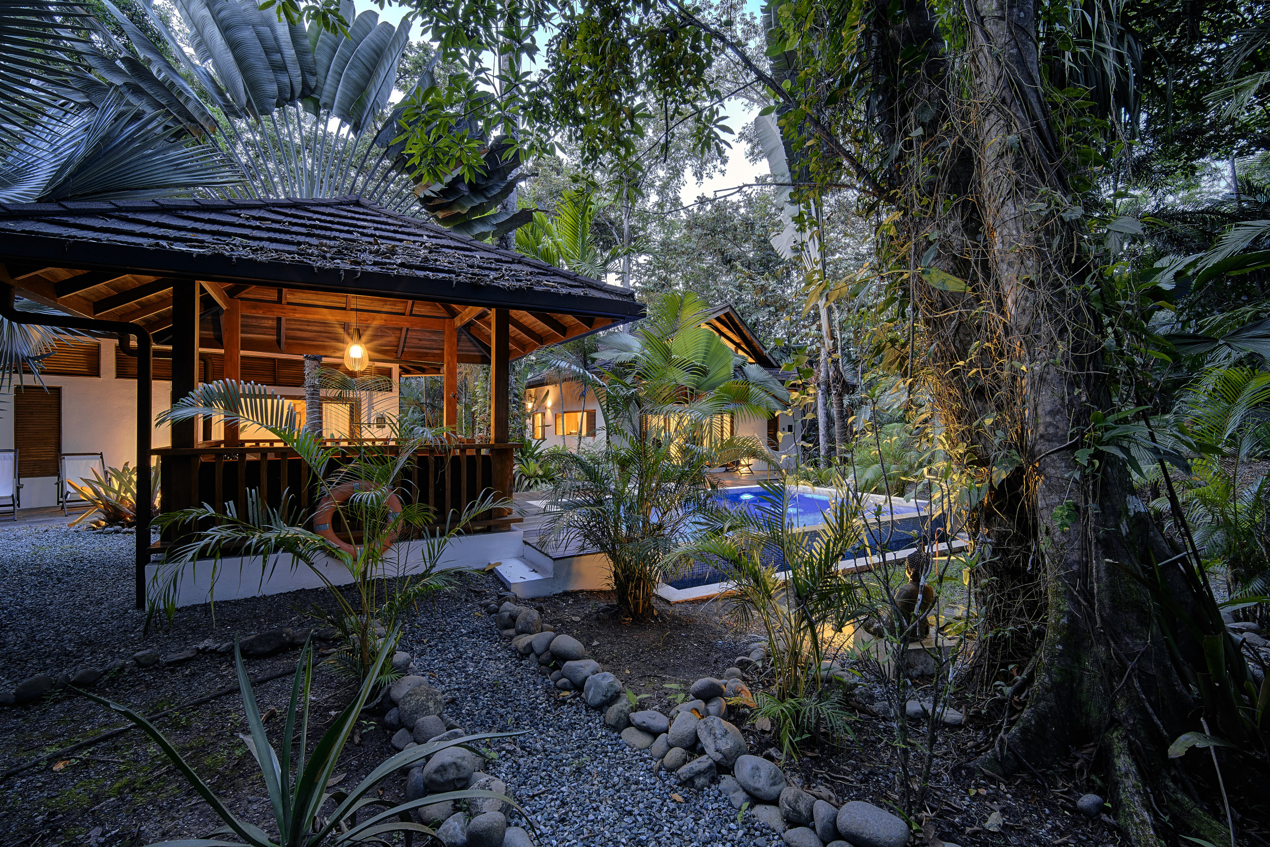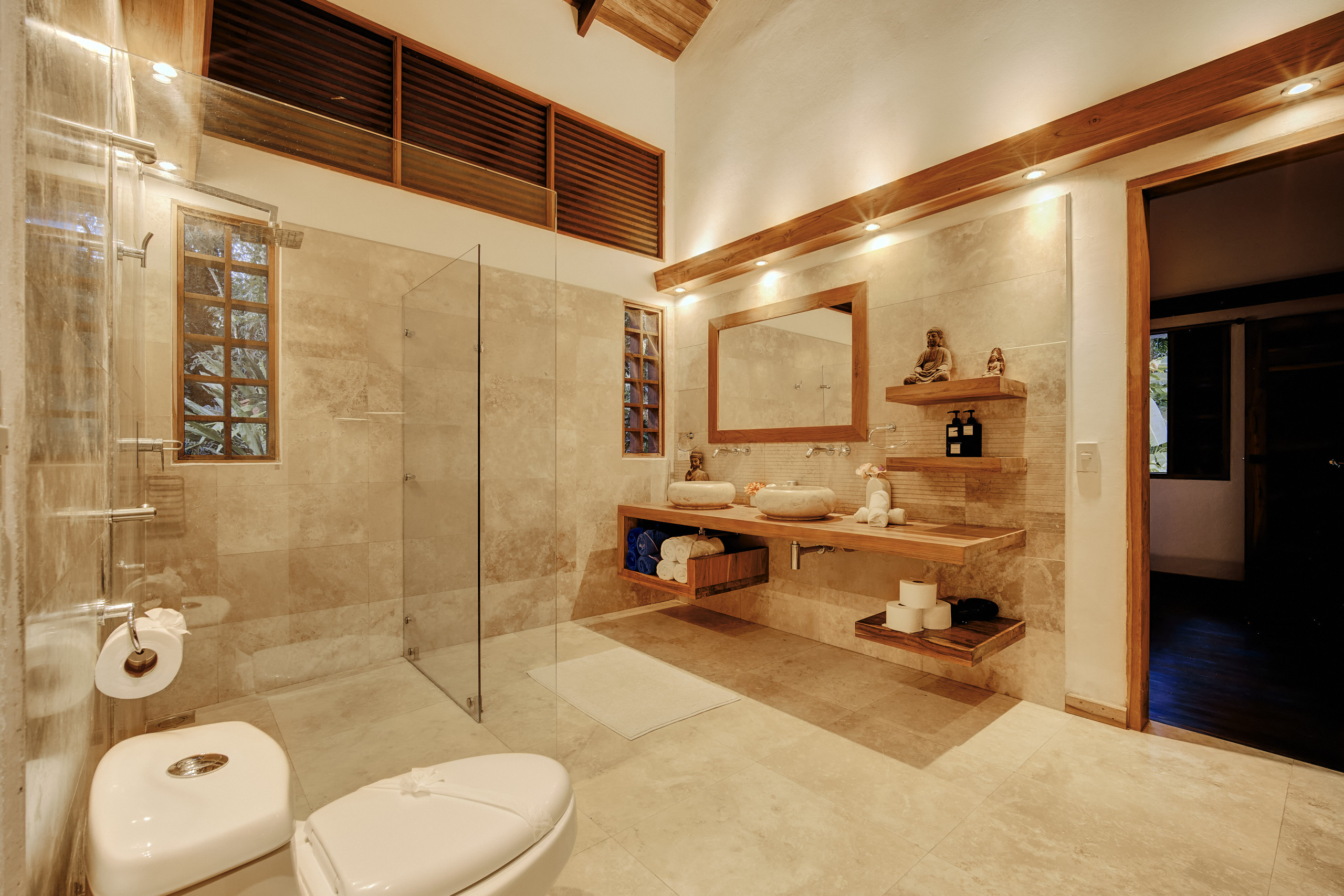 Welcome to Zen Resort, where the rainforest meets the beach on beautiful Playa Chiquita! The Zen Resort is just a 200 meter walk from the ocean and right in the heart of Playa Chiquita. There are restaurants just steps from the property so there is no need to drive. This exotic tropical villa is located in lush, enclosed gardens next to one of the most beautiful beaches in Costa Rica. Our location is perfect for guests who love the beach and want the complete convenience of restaurants and a great grocery store just steps away. The Zen Resort is custom made and professionally decorated. The large house, Zen Villa, has sliding French doors in the living room and bedrooms that open to a covered patio that brings in the tropics. There is a covered outdoor living room giving you the option of lounging or dining alfresco. Monkeys, sloths, toucans and parrots are frequent visitors to the gardens. There is a beautiful open-air Bali style bathroom adjacent to the master bedroom and a separate full bathroom and second shower. The master bedroom has a king bed and sliding doors that open to the pool area. The second and third bedrooms have queen beds and share a huge bathroom with shower. All bedrooms have air conditioning units for a restful sleep. If you are looking for a luxury house for rent in Costa Rica that is private, beautiful and luxurious, the Zen house is the right choice for you. Zen Resort has two additional villas that have their own infinity pool, kitchen and a huge luxury bathroom. Each villa (Bodhi and Nirvana) has 2 bedrooms with queen beds and a loft in one of the rooms.