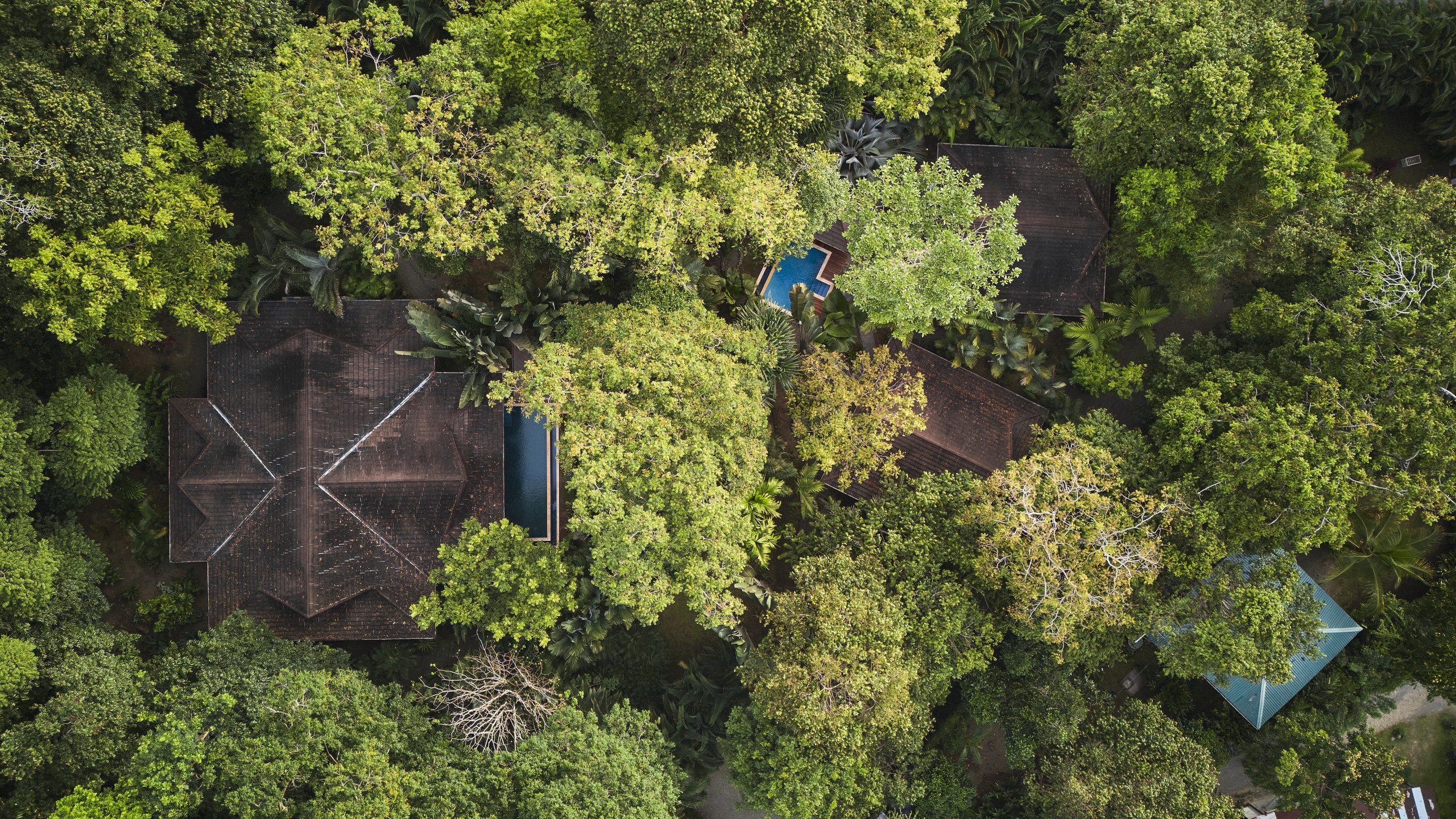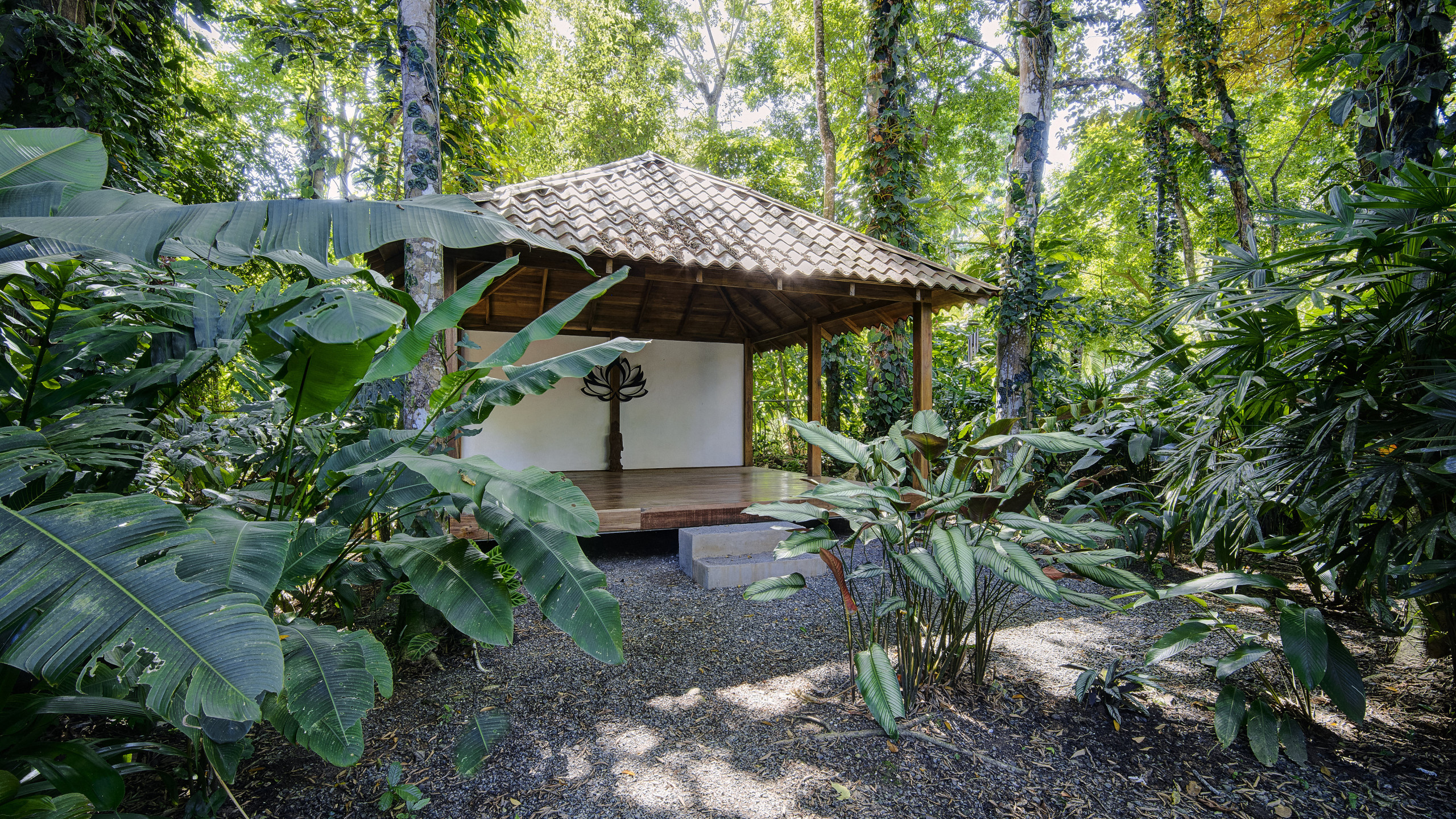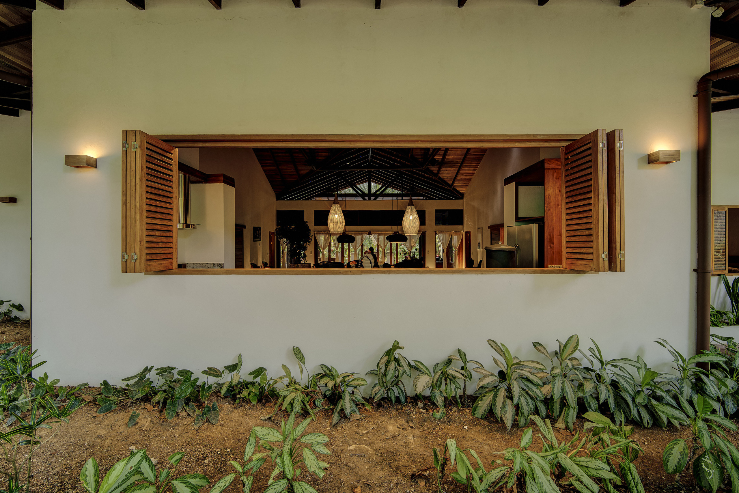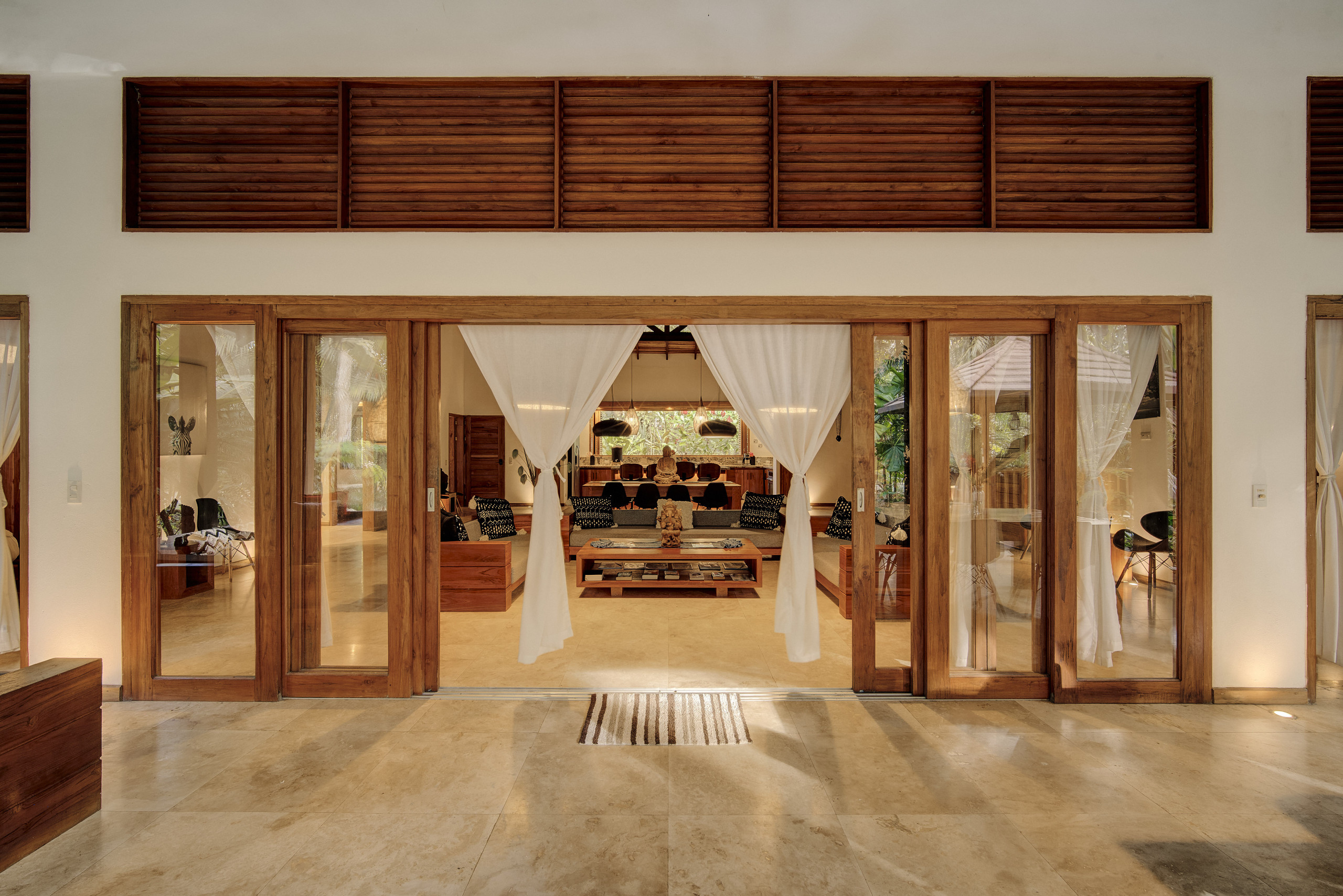 At the centre of the retreat is a stunning main house designed as a Mermaid yoga, dance, and gathering space, featuring a two-storey vaulted ceiling and expansive floor-to-ceiling windows. This open-plan area is flooded with natural light and connects guests with the tropical landscape even indoors, making it an ideal space for yoga, meditation, and workshops.